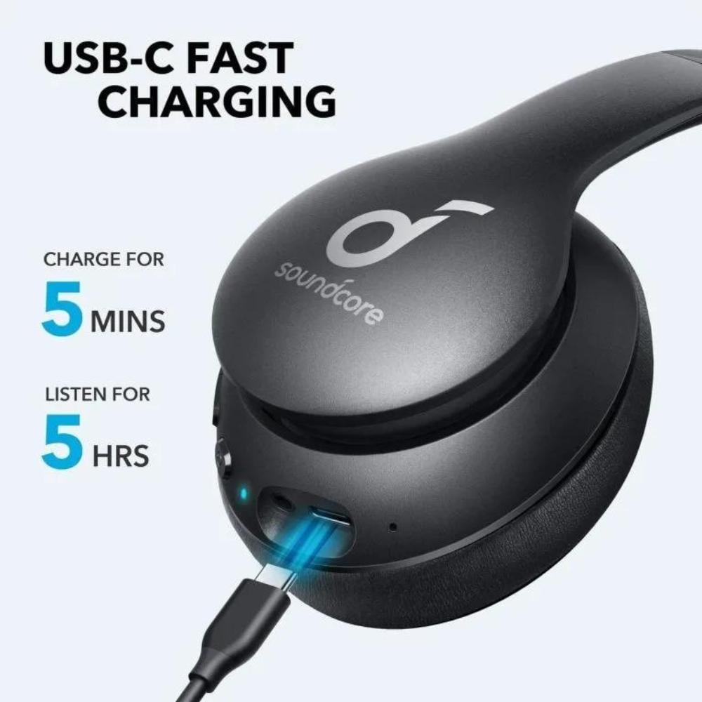 مع هذه الميزات مجتمعة، يكون صوت الجهير أعلى مرتين بفضل تقنية إدارة الطاقة المشهورة عالميا من Anker وشريحة Bluetooth منخفضة الطاقة، يوفر Q10i ما يصل إلى 60 ساعة من التشغيل. مع ساعتين من التشغيل يوميا، يمكن استخدام سماعات الأذن لمدة شهر كامل. 5 دقائق من الشحن = 5 ساعات من التشغيل: لن تواجه مشكلات انخفاض البطارية حتى عندما تكون في عجلة من أمرك. قم بشحن سماعة الرأس الخاصة بك عبر منفذ الشحن USB-C عالي السرعة. استمتع بالراحة والتوافق.