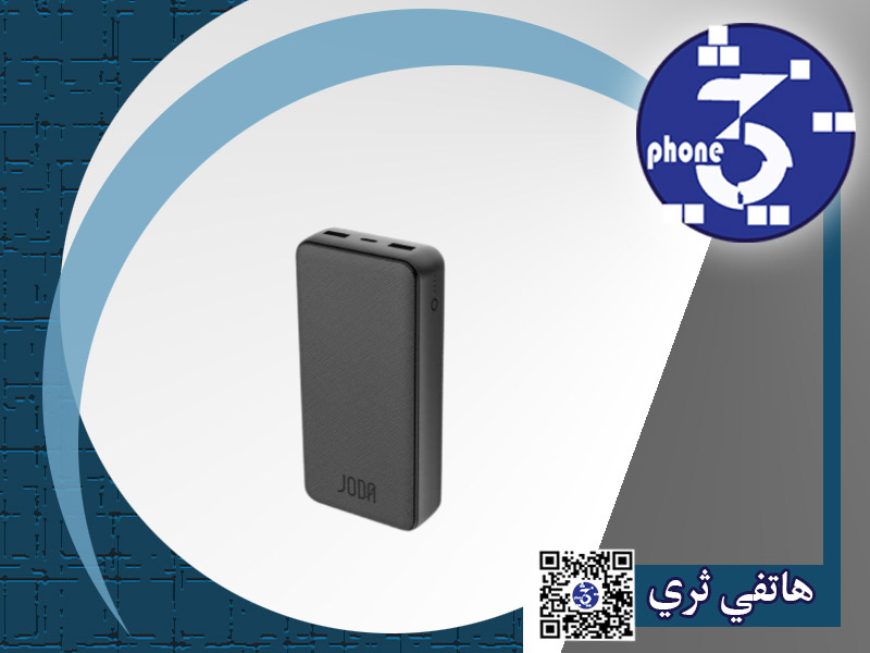 بطارية متنقلة JODA بسعة 20000 ملي امبير بقوة 22.5 واط بمنفذ تايب سي ومنفذين يو اس بي - اسود.
