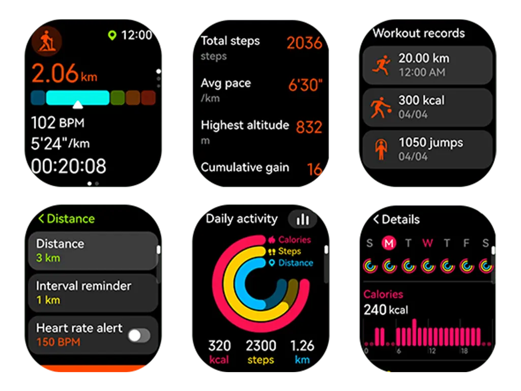 • تدعم التعرف التلقائي على القفزة التالية في اللياقة البدنية، تُحدد الطرق، تقيس المسافة، وتدعم التعرف أيضًا على استهلاك السعرات الحرارية.